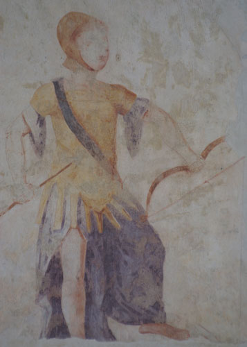 Abb. links: eine Bogenschützin, Göttin Diana. Abb. rechts: Abb.: Teil der Paulus-Szene