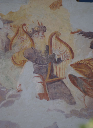 Abb.: Harfenspieler, mit Detailausschnitt.