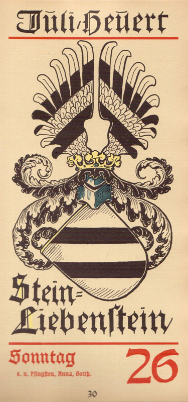 Stein-Liebenstein in Silber zwei schwarze Schrägbalken, auf dem gekrönten Helm mit schwarz-silbernen Decken ein silberner Flug, beiderseits mit den zwei schwarzen Schrägbalken belegt, rechts schräglinks und links schrägrechts. |