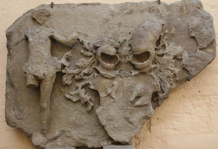 Kaiserpfalz, dort aufgestellter Wappenstein, der von den