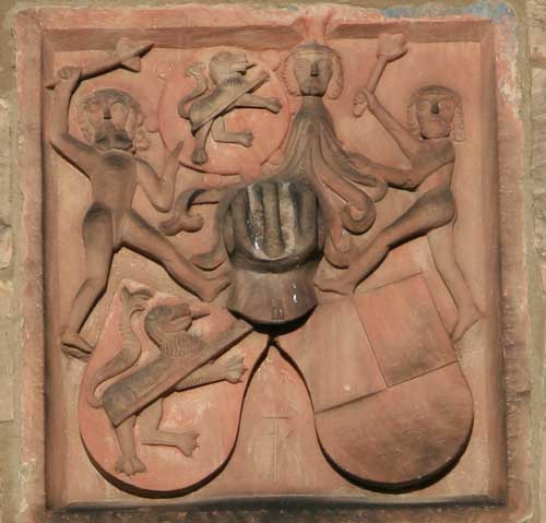 Nordostturm der Kernburg, geviertes Wappen
