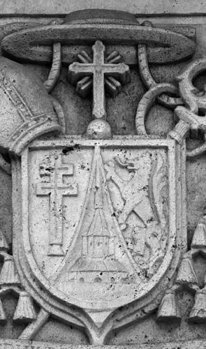 Bildbeispiel: Passau, Veste Oberhaus, Schlußstein eines Bogens. Hier ist das Hochstiftswappen gemeint.