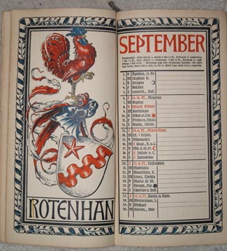 Das nächste Beispiel stammt vom Künstler Georg Otto aus dem Jahr 1916. Prinzessin Victoria Margarethe Elisabeth Marie Adelheid Ulrike von Preußen (17.4.1890-9.9.1923) hat Heinrich XXXIII. Prinz Reuß-Köstritz (26.7.1879-15.11.1942) geheiratet. Der Wappenschild des fürstlichen Hauses Reuß ist sowohl hinsichtlich der Blickrichtung der Feldinhalte als auch hinsichtlich der Anordnung der Felder, also komplett, gewendet.