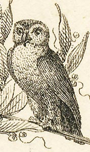 Das Feld für die Signatur wird links von einem antikisierenden Helm und rechts von einer Eule (ein Kauz) begleitet, beides Attribute der griechischen Göttin Pallas Athene, der Göttin der Weisheit, Schutzherrin der Helden, der Künste und Wissenschaften.