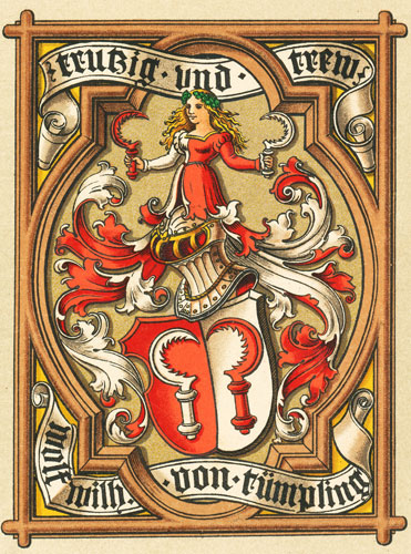 Helmdecken rot-silbern. Vgl. Siebmacher Band Bg9, S. 78, T. 95