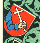 Wappen, denn es zeigt in Rot (hier schwarz damasziert) eine