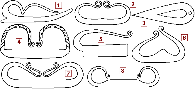 symmetrische mit den eingerollten Enden (1, 2, 7, 8). 4 ist