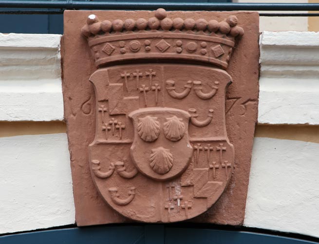 Jakobsmuscheln. Die Helmzier wäre ein silberner Schwanenrumpf