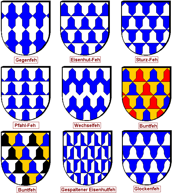 Eine wichtige Gruppe, Teilflächen eines Wappenschildes mit Inhalt zu versehen, ist das Pelzwerk. Ursprünglich handelte es sich um echtes Pelzwerk, ab dem Ende des 12. Jh. wurde es in stilisierter Form übernommen. Davon gibt es drei große Gruppen: