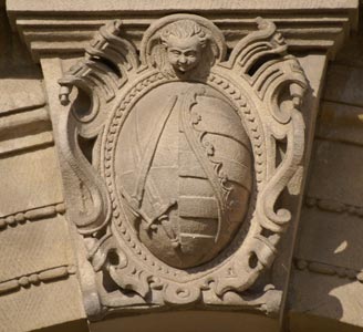 Diesem oben beschriebenen Aufbau folgen bauplastische Wappendarstellungen z. B. am