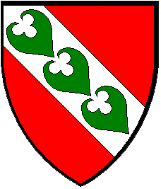 von Gumppenberg In Rot ein silberner Schrägbalken, belegt mit drei kleeblattförmig ausgeschlagenen grünen Seeblättern |