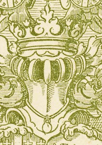 Abb. links: Helmgestaltung eines unbekannten Künstlers aus dem Jahr 1645 für Johann Friedrich Löffelholz von Colberg (Exlibris).