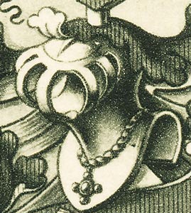 Abb. rechts: Helmgestaltung von Georg Otto (6.9.1868-17.5.1939) (Exlibris von 1893 für Wolfgang Mecklenburg).