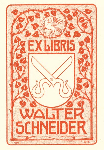 Schneider war ein großer Auftraggeber von Exlibris, die von
