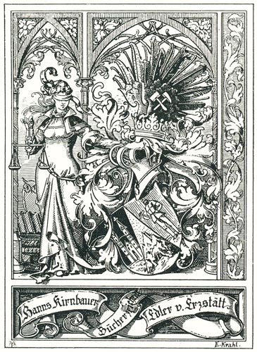 Exlibris, entworfen von Ernst Krahl (1858-1926) für Hanns Kirnbauer Edler v. Erzstätt.