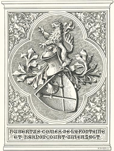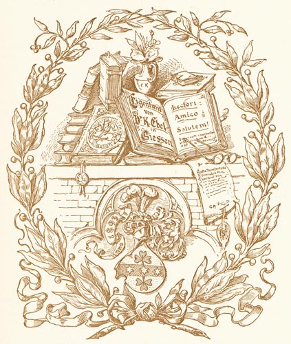 gearbeitete Exlibris birgt wenig Heraldik und viel feine Muster