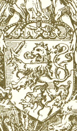 noch unterstreicht. Das Vollwappen wird gerahmt von regelmäßig