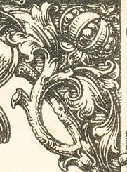 innerhalb eines Rahmens aus Renaissance-Motiven, ein Wappen,