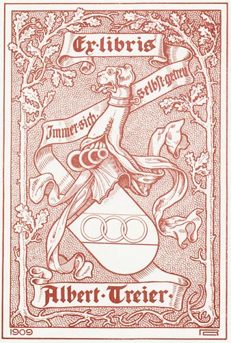 einem anderen, farbig gefaßten Exlibris). Der Künstler wählte