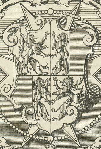 Ein Löwe dient hier als Schildhalter, ferner ist dem