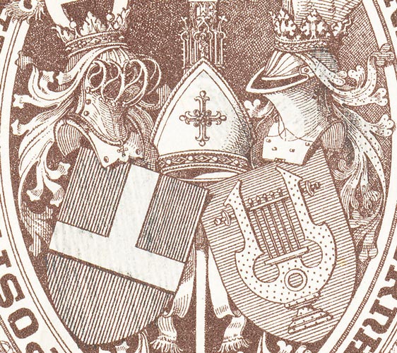 Schild dargestellte Vollwappen exzentrisch sitzt. Der breitere