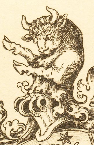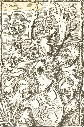 Familienwappen ist hier vom Künstler eingerahmt von einer