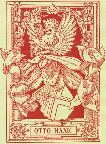 Soweit zum Künstler, jetzt zum Eigner: Der Zusatz "von Hattingsheim" wurde 1890 Rudolf Hoefken (9.7.1861-13.10.1921) verliehen, Regierungsrat und bekannter Numismatiker in Wien, 1902-1913 Präsident des Clubs der Münz- und Medaillenfreunde bzw. der österreichischen Gesellschaft für Münz- und Medaillenkunde, Gründer und Herausgeber der Archivs für Brakteatenkunde (http://www.biographien.ac.at/oebl_2/353.pdf) und 1912-1922 Vorsitzender der Österreichischen Exlibris-Gesellschaft. Sein Vater Dr. phil., k.k. Hofrat, k.k. Min.Rat. Gustav Hoefken (14.7.1811-14.7.1889), am 20.6.1867 nobilitiert als Ritter von Hoefken, stammt aus Hattingen und zog nach Wien. Er war verheiratet mit Karolina (Lina) Rappold. Der Sohn Rudolf heiratete Pauline Wottitz. Das Exlibris ist nicht durch Angabe eines Vornamens personalisiert und bietet unter der Wappenzone ein Feld für eigene Einträge. Unter dem zentralen Wappen befindet sich die Devise "Veritas".