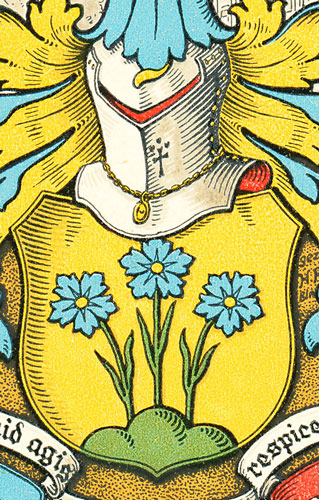étoile d'or. Casque couronné. Cimier la tête et col du cygne.