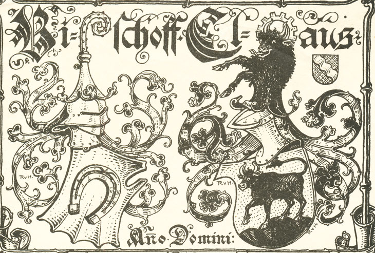 vier dargestellten Wappen sind den Familien Bischoff, Claus,