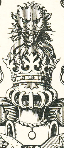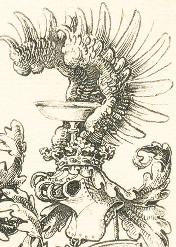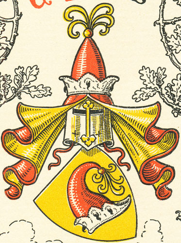 schwebende Vollwappen ein. Als Wappen sehen wir in Gold eine