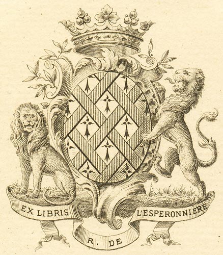 Dieses Exlibris (79 x 51 mm, Kupferstich, GMN. Répertoire gén. des ex-libris français: