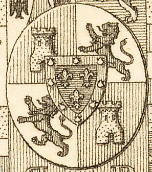 fleurs-de-lys d'or, aux 2 et 3: d'argent, à la fasce de gueules,