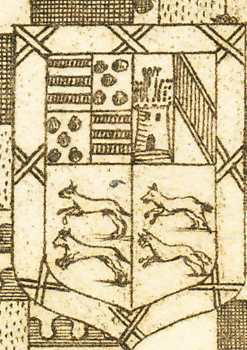Blason: Escudo cuartelado; 1o. y 4o., en campo de oro,