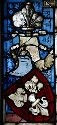 Die Stromer hingegen entwickelten ihr Oberwappen weiter: Erst führten sie auf einem Helm mit rot-silbernen Decken auf einem roten Kissen einen silbernen Glevenstab (Stab mit einer oberhalben Lilie). So ist es in den gotischen Glasfenstern von St. Sebald und St. Lorenz in Nürnberg zu sehen. In der Stiftskirche St. Martha gibt es eine Darstellung, wo auf dem Helm mit eigentlich rot-silbernen, dort aber gänzlich silbernen Decken auf einem eigentlich roten, dort silbernen Kissen ein silberner Stab zu sehen ist, der oben mit drei oberhalben Lilien besetzt ist, also 1 Schaft, 3 Lilien. In der Literatur wird das Stromer-Wappen meist mit drei Glevenstäben in der Helmzier wiedergegeben (vgl. Siebmacher Band: Bay Seite: 59 Tafel: 63), und so finden wir es auf den Totenschilden in der Nürnberger Lorenz-Kirche. Mit drei separaten, fächerförmig gestellten Lilienstäben, also auch mit drei unabhängigen Stäben, finden wir es auch auf einer separaten runden Glasscheibe in St. Lorenz, die deutlich nach den anderen Beispielen entstanden ist. Die Darstellung in der Stiftskirche St. Martha ist also eine Zwischenstufe, ein einzelner Schaft, von dessen Abschlußplatte drei oberhalbe Lilien mit je drei Blättern entspringen. So können wir den Differenzierungsprozeß nachvollziehen, und hier in St. Martha haben wir mit der Teilaufspaltung nur im oberen Bereich eine hochinteressante Übergangsform.