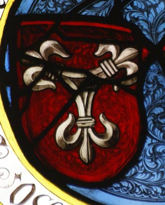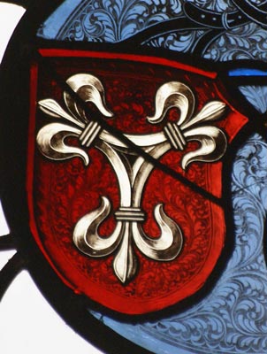 Interessanterweise sieht man auch eine Entwicklung des Motivs: In den frühen, gotischen Fenstern wie hier in der unteren Photo-Reihe ist das Dreieck sehr klein und dient eigentlich nur der Verbindung der drei groß dargestellten Lilien. Eigentlich ist es nur ein dreieckiger Kreuzungspunkt der drei "Lilienstiele". In den späteren Darstellungen, wie in der oberen Photo-Reihe, tritt das Dreieck deutlicher hervor und hat jetzt auch Platz für einen zentralen Durchbruch, seine Seiten ergeben sich graphisch in einem schwungvollen Zug aus den Seitenblättern der Lilien heraus, so daß jeweils zwei Lilienseitenblätter und ein Bogen eine zeichnerisch durchgehende Einheit bilden, was der Darstellung eine besondere Harmonie und Dynamik verleiht.