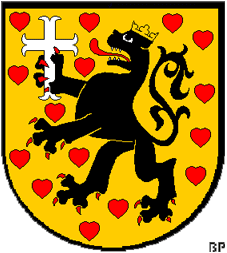 Die Herren von Lichtenberg führten innerhalb eines roten Bordes in Silber einen schwarzen Löwen (Siebmacher Band: Souv3 Seite: 69 Tafel: 85). Die Grafen von Zweibrücken-Lichtenberg nahmen das Element in ihr Wappen auf (Siebmacher Band: Souv3 Seite: 86 Tafel: 96); ihr Schild war geviert mit Herzschild, Feld 1: in Gold drei rote Sparren (Grafschaft Hanau), Feld 2: in Gold ein roter Löwe (Grafschaft Zweibrücken), Feld 3: innerhalb eines roten Bordes in Silber ein schwarzer Löwe (Herrschaft Lichtenberg), Feld 4: in Rot zwei silberne Balken (Herrschaft Ochsenstein), Herzschild: rot mit goldenem Bord (Bitsch, Bitche). Die Grafen und späteren Fürsten von Hanau-Lichtenberg wiederum starben 1736 mit Johann Reinhard III. Fürst v. Hanau-Lichtenberg (1665-28.3.1736) aus, mit ihm erlosch das gesamte Haus Hanau, und das Erbe fiel an Hessen, denn des letzten Fürsten Tochter, Charlotte Christiana Magdalena Johanna Gräfin v. Hanau-Lichtenberg (2.5.1700-1726), hatte am 5.4.1717 in Philippruhe Ludwig VIII. Landgraf v. Hessen-Darmstadt (5.4.1691-17.10.1768) geheiratet. Daß nicht das gesamte Territorium an Hessen-Darmstadt fiel, sondern nur Hanau-Lichtenberg, liegt an einem 1643 mit Hessen-Kassel geschlossenen Erbvertrag, das nun den Hanau-Münzenberger Anteil bekam, der zuvor an Hanau-Lichtenberg gefallen war.