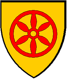 Bolanden Vitzthum im Rheingau 1200. In Gold ein rotes Rad. 1225 auch mit Lilie im Schildfuß (Dekoration?). Helmzier: Ein rotes Rad, außen mit Pfauenspiegeln, Nägeln oder Bolzen besteckt, auch ein halbes Rad, auch ein Schirmbrett mit Rad. Die stammverwandten von Falkenstein und von Hohenfels führten in Blau ein silbernes Rad. |