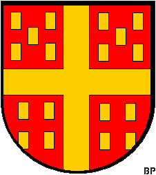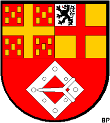 Elter/Autel (Bastardlinie): luxemburgische Familie Gaspard, Bürgermeister von Laroche 1455, fügte dem Autel-Wappen einen Bastardfaden hinzu. In Rot ein durchgehendes, goldenes Kreuz, begleitet von 18 goldenen Schindeln, in jedem oberen Winkel 5 (2:1:2), in jedem unteren Winkel 4 (2:1:1), das Ganze überdeckt von einem Schrägfaden. Nach Loutsch. |