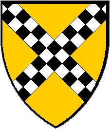 von Montabaur (Variante) Werner S. v. M. Knecht 1348 Golden-rot geschacht, mit einem dreilätzigen silbernen Turnierkragen belegt. Helmzier ein geschlossener Flug. Helmdecken rot-golden. Nach Gruber. |