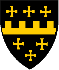 Stromberg, wohlgeborener Knecht 1346 In Schwarz ein oben gezinnter Balken, begleitet von sechs (3:2:1) goldenen Kreuzchen. Helmzier ein Hahnenfederbusch. Helmdecke schwarz-golden. |