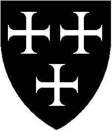 Saane, Philipp von Schönburg 1499 In Schwarz drei (2:1) silberne Tatzenkreuze (im Gruber als Ankerkreuze). Helmzier ein schwarzer Turnierhut mit schwarzem Stulp, auf dem Hut eine silberne hahnenfederbesteckte Kugel. Helmdecke schwarz-silbern. |