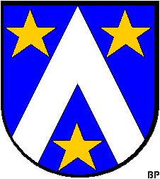 Variante: Ein silberner Stern zwischen einem silbernen Flug, die Sterne im Schild silbern. Decken blau-silbern.