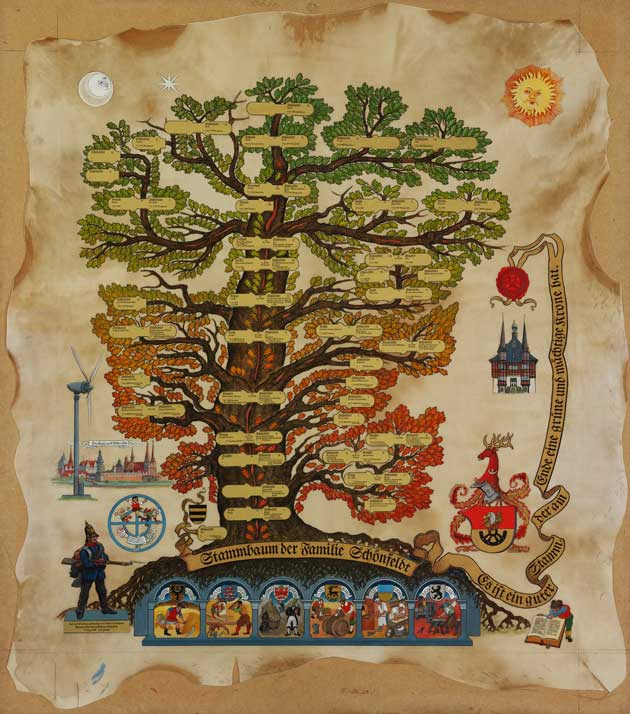Bsp.: Stammbaum der Familie Schönfeldt mit Detailausschnitten